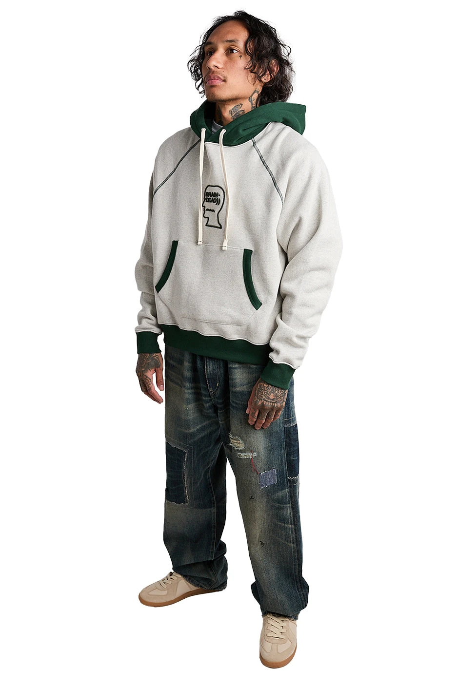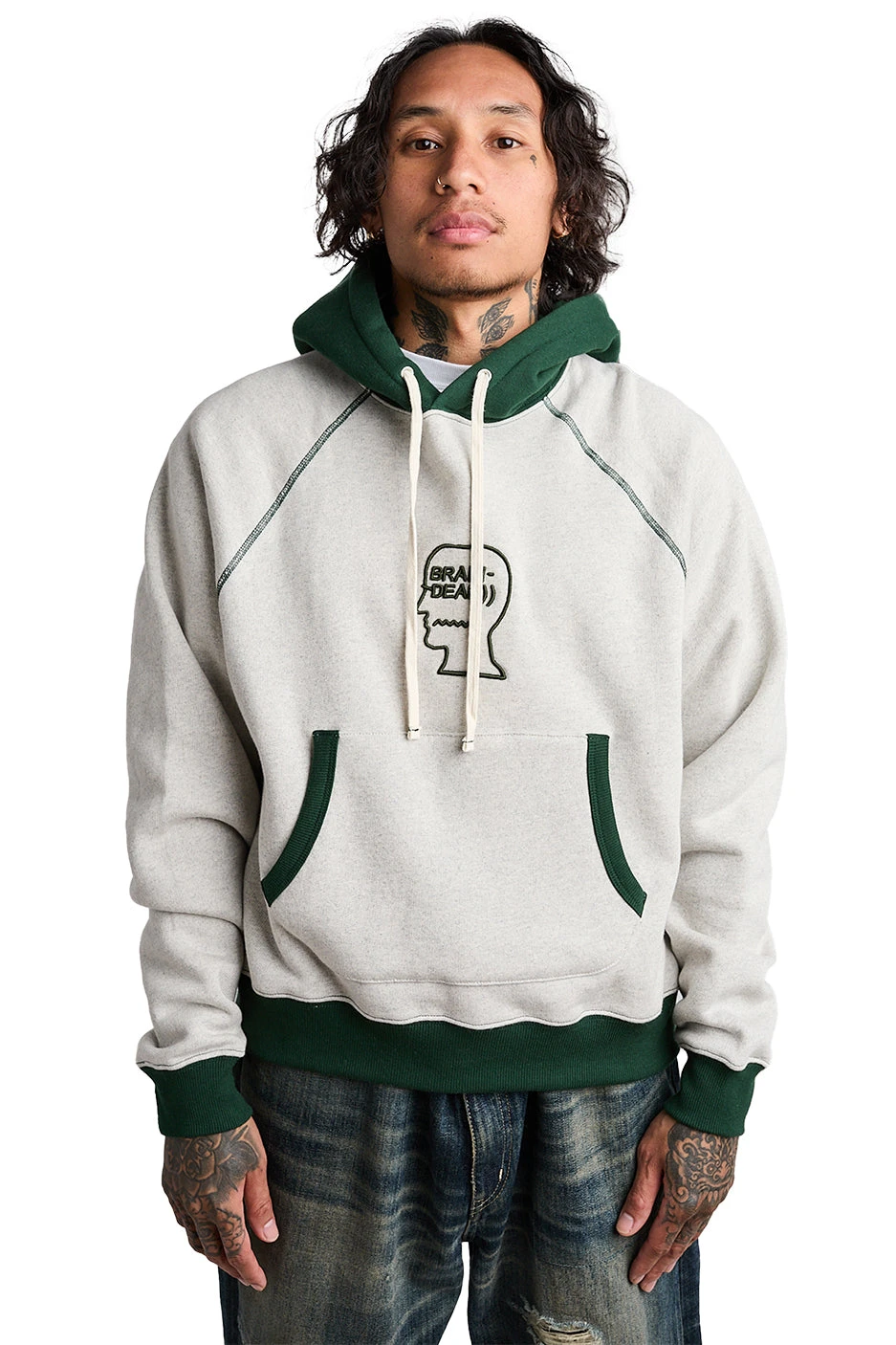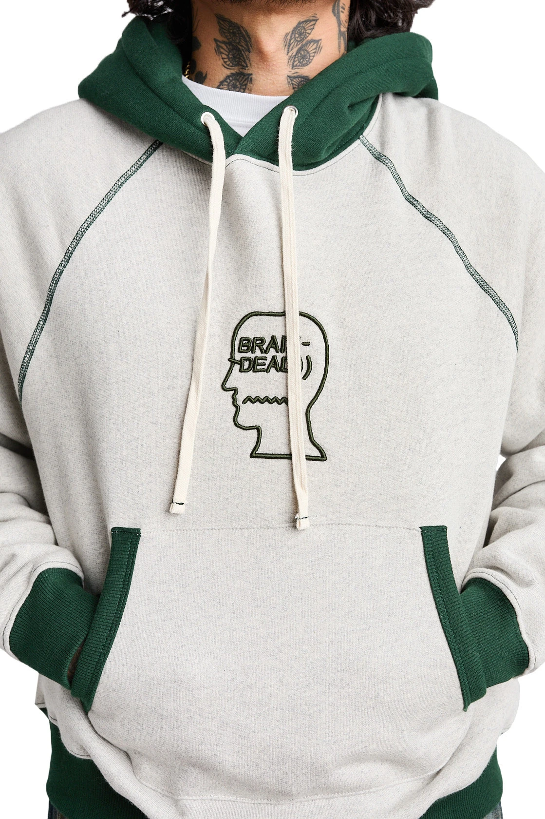 Brain Dead Fleece Logo Head Raglan Hoodie ‘Oatmeal Green’