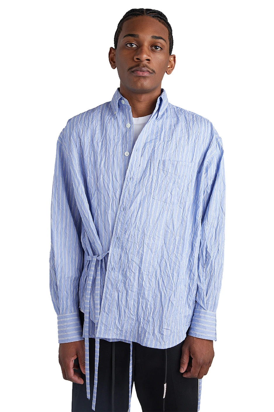 - Designed as a slimmed down Kimono with Japanese crinkled shirting fabric.